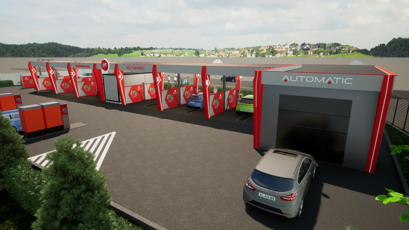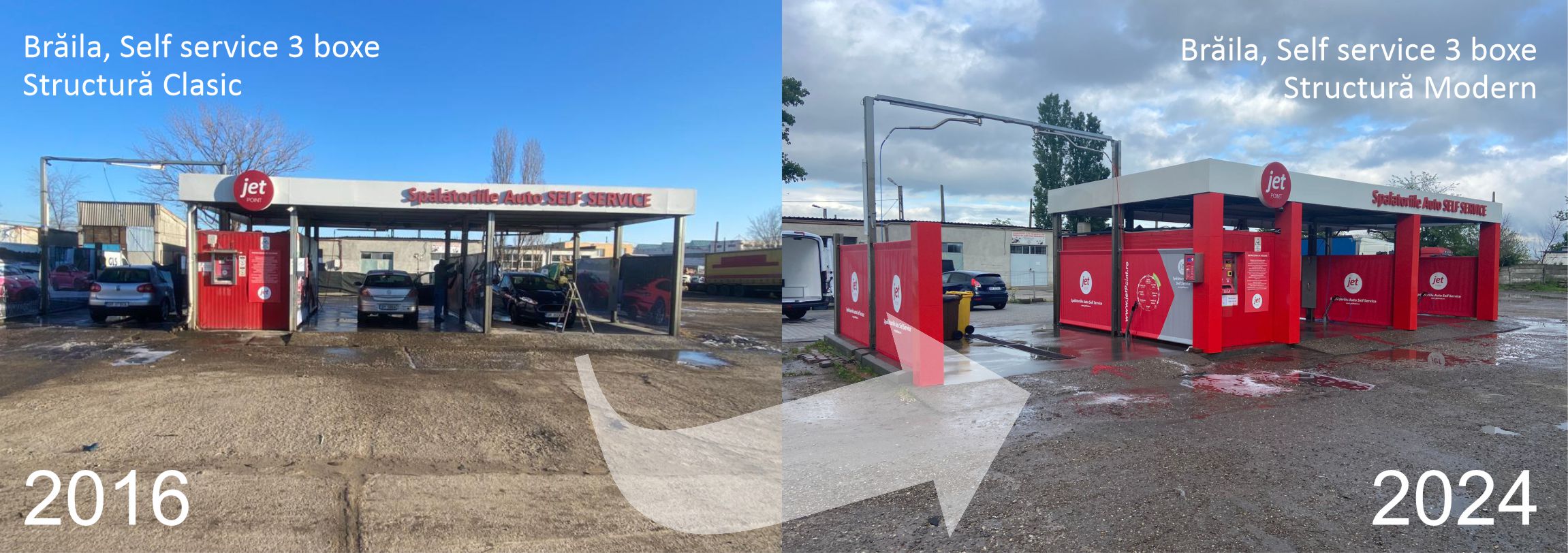 (Exemplu: 6 boxe self service SAU 4 boxe self service + 1 portal automat etc.) - Structura/Imaginea spălătoriei; contează mult (ai competiţia aproape!) şi poţi alege diverse tipuri de structuri metalice